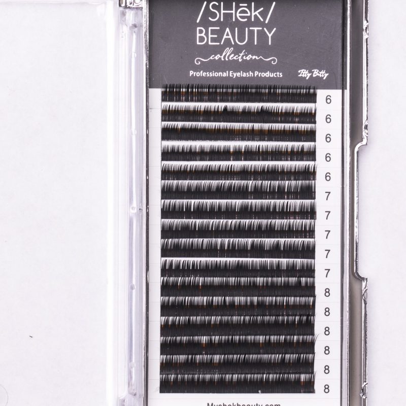 /SHēk/ hand selected our Itty Bitty Eyelash Extensions for their unique beauty, curl, and luster. You will not find softer or more natural looking lashes
